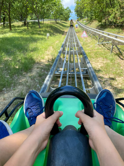 Die Sommerrodelbahn Laterns im österreichischen Vorarlberg ist ein beliebtes Ziel für einen Ausflug. Es ist die einzige klassische Sommerrodelbahn Vorarlbergs und erfreut im Laternsertal Junge und Junggebliebene. Ein Schrägaufzug bringt dich gemütlich zum Start. Von dort geht es dann durch einen schmalen Kanal über zahlreiche Kurven rasant ins Tal. 800 Meter Spaß, die durch einen schönen Wald, über Über- und Unterführungen sowie über mehrere Jumps führen. Eine Geschwindigkeitsmessstrecke lädt dazu ein, mehrmals zu fahren und vielleicht deine Bestzeit zu knacken!